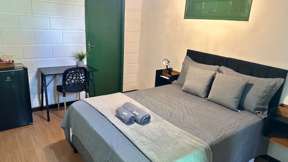Apê for ferie eller forretninger, med klimaanlegg, to soverom, én dobbeltseng + én triliche, bad, vaskemaskin og tørketrommel, mikrobølgeovn. Den er perfekt for familier og profesjonelle, og tilbyr komfort og funksjonalitet. Nyt dette koselige stedet for å slappe av eller jobbe. Bestill for et minneverdig opphold, hvor bekvemmeligheten blir med i koseligheten. Utformet for å dekke behovene dine. Hvorfor velge dette oppholdet? 🏖️ Basseng, klimaanlegg, vaskemaskin og tørketrommel og privatliv!