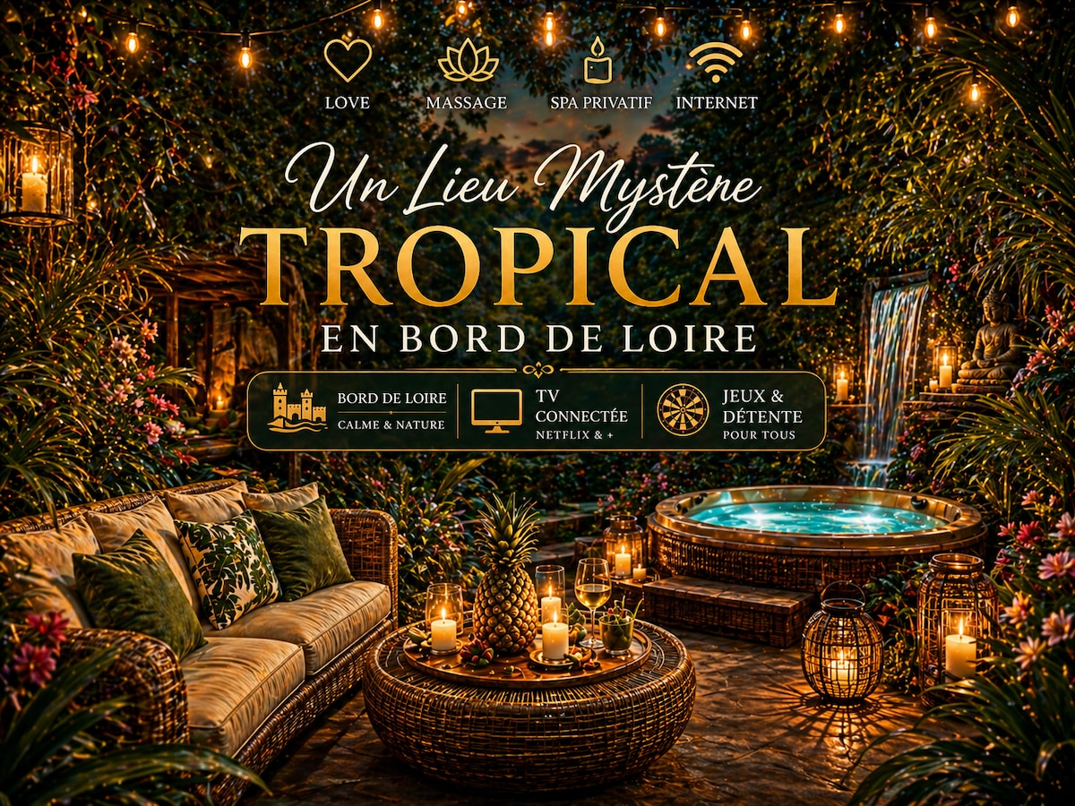 ✨ Découvrez le Mirage Tropical , une parenthèse raffinée au bord de la Loire 🌴. Profitez d’un Spa , Table de Massage d’une terrasse élégante et d’un espace jungle dépaysant pour vous évader. Amusez-vous autour du jeu de fléchettes, partagez un apéro exotique ou détendez-vous dans une atmosphère unique. Le soir venu, la chambre s’illumine de couleurs envoûtantes pour un moment chic et romantique 💖. Ici, chaque détail sublime votre séjour pour créer des souvenirs mémorables.🌴❤️❤️💕💕💕👄🫂❤️