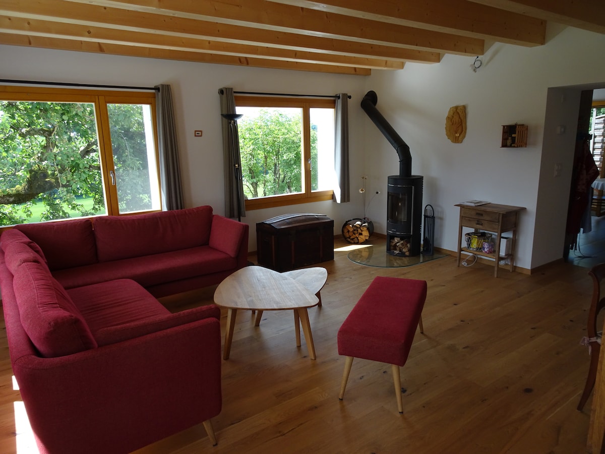 Midt på landet, leiligheten i første etasje, smakfullt forvandlet i 2019 i et gammelt snekkerverksted. Veldig lyst, det ligger ved siden av et renovert, gammelt gårdshus. Den har en terrasse med panoramautsikt over de mellomstore fjellene. Veldig stille. God beliggenhet mellom Genèvesjøen og Les Préalpes. I nærheten av turer og kulturelle besøk (Gruyère, Montreux, Vevey, Lausanne og Bern). Leieperiode: minimum tre netter.