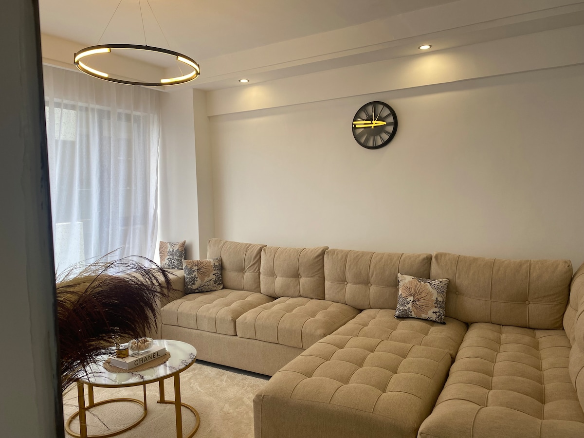 Slapp av på dette unike og fredelige feriestedet med én seng. Det er en helt ny leilighet med én seng;ren med en queen size-seng. Den er utstyrt med utmerkede varme dusjer, komfortable moderne sofaer og internett med høy hastighet. Du finner et godt utstyrt kjøkken, minimalistisk konsept og fantastisk utsikt over byen. Den har en full reservegenerator, et oppvarmet basseng, toppmoderne treningsstudio og lekeområde for barn. Beliggenheten er også utmerket med stressfri transport.