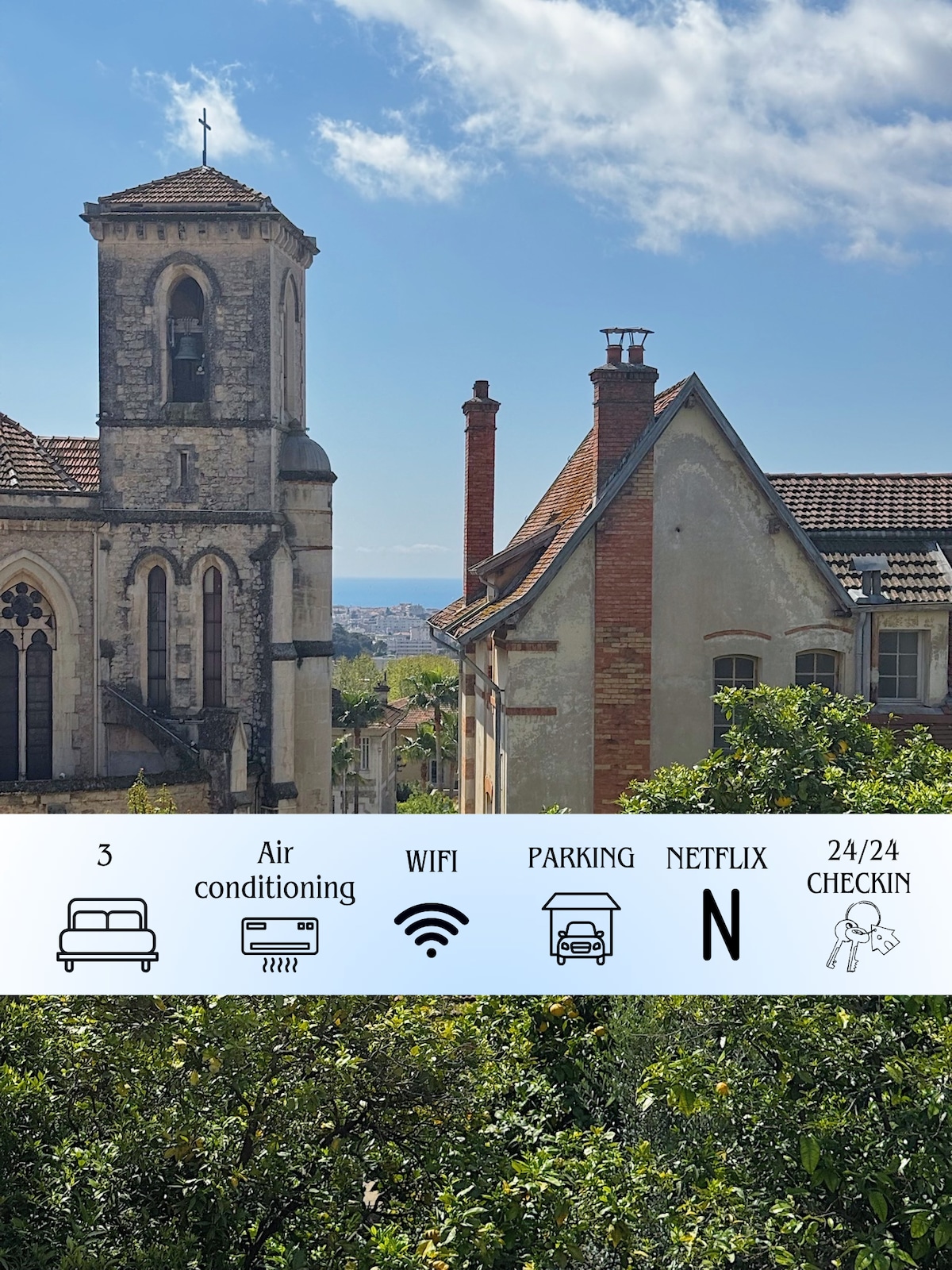 Havutsikt i Cannes · Balkong, garasje og gangavstand til stranden