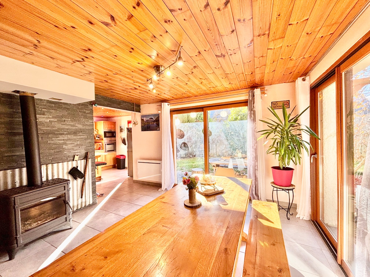 Nærliggende og med utsikt over landsbyen Vallouise, Maries lyse og svært komfortable hytte tegnet av en arkitekt, er omgitt av en vakker fjellhage, du vil være stille, inne som utenfor vil du nyte utsikten over et beroligende fjell, vil utstillingen tillate deg å nyte solen hele dagen. Selv om det er fem minutters gange fra sentrum av landsbyen og dens fasiliteter, er stedet veldig stille. Den store stuen er dekorert med en komfyr for dine vinterkvelder.