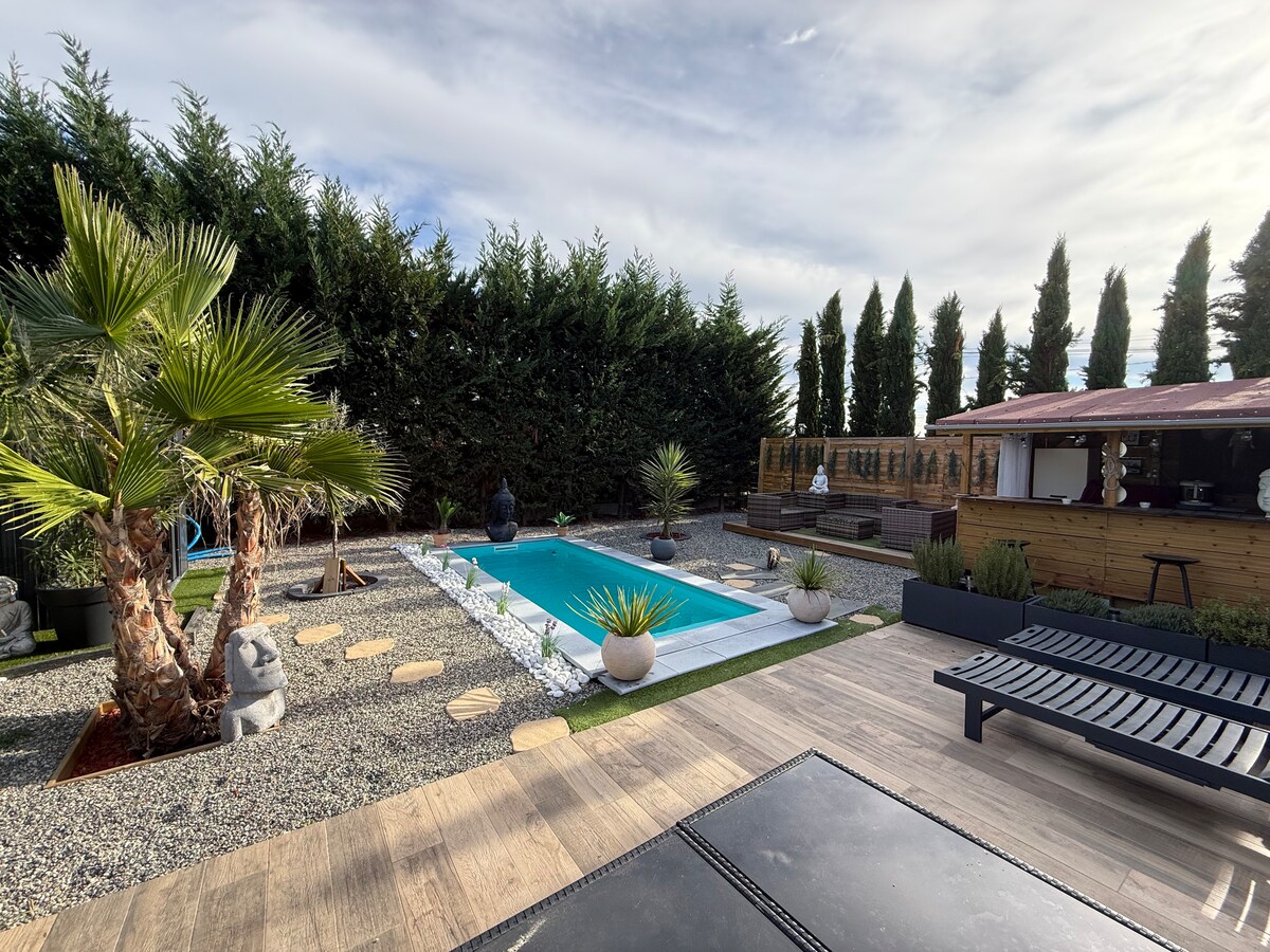 Dette huset ønsker deg velkommen for et kort- eller langvarig opphold (40 % rabatt for opphold på mer enn 28 dager). 20 minutter fra Toulouse, veldig fint, nylig klimaanleggshus på 160 m², ettetasjes, med oppvarmet basseng fra 1. mai til 30. september, og anlagt hage.
