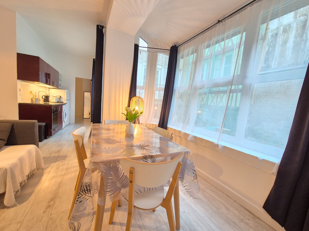 Denne leiligheten vil ta deg tilbake til middelalderen, og kombinere komfort og modernitet. I stuen har du en flott utsikt over Saint-Ouen-klosteret. Ingen bekymringer for å parkere fordi en parkeringsplass venter på deg. Et bad med boblebad hvor du kan slappe av i en zen-atmosfære. Leiligheten ligger i sentrum, via en blindgate 50 m unna, vil du finne deg selv i rue du Robec med alle dens restauranter med forskjellige atmosfærer.
