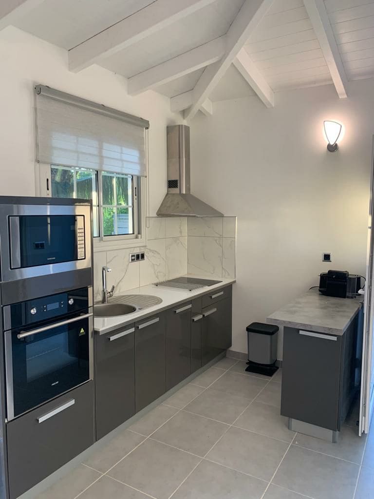 Fantastisk beliggenhet i åsene i Le Francois, 15 minutter fra flyplassen, er dette komfortable gjemmestedet et ideelt sted å slappe av etter en dag med å nyte alt denne vakre øya har å tilby. Halvveis mellom strendene i sør og de frodige skogene i nord, er det den perfekte rammen for å gjenoppdage deg selv i fredelige omgivelser. Den overbygde uteterrassen er de perfekte omgivelsene for en avslappet frokost eller romantisk kveldsmåltid.