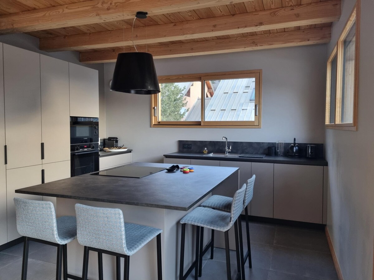 Moderne og varm leilighet i Monêtier-les-Bains. Eksklusive tjenester: store volumer, gulvvarme, terrasse vendt sørover, fantastisk utsikt over Écrins-massivet. Den har tre soverom, inkludert en master-suite, to bad, et separat toalett, et vaskerom, et utstyrt kjøkken som åpner til en stor stue. Det er også en privat garasje, skioppbevaring og sykkeloppbevaring, alt tilgjengelig med heis.