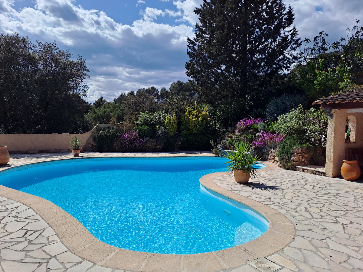 MØBLERT KLASSE 3 stjerner Kom og nyt som familie, par eller venner et nytt tilbygg som tilbyr ro og fred, 2 soverom, inkludert en suite, kjøkken, stue, separat toalett, grill, en privat parkeringsplass. En utendørs jacuzzi med 6 plasser, under en pergola med gardiner, med fin utsikt, uansett årstid. Bordtennisbord er tilgjengelig. I nærheten av motorveiavkjørsel, 11 km fra stranden i Hyeres, Pradet, Toulon og kjøpesentre.