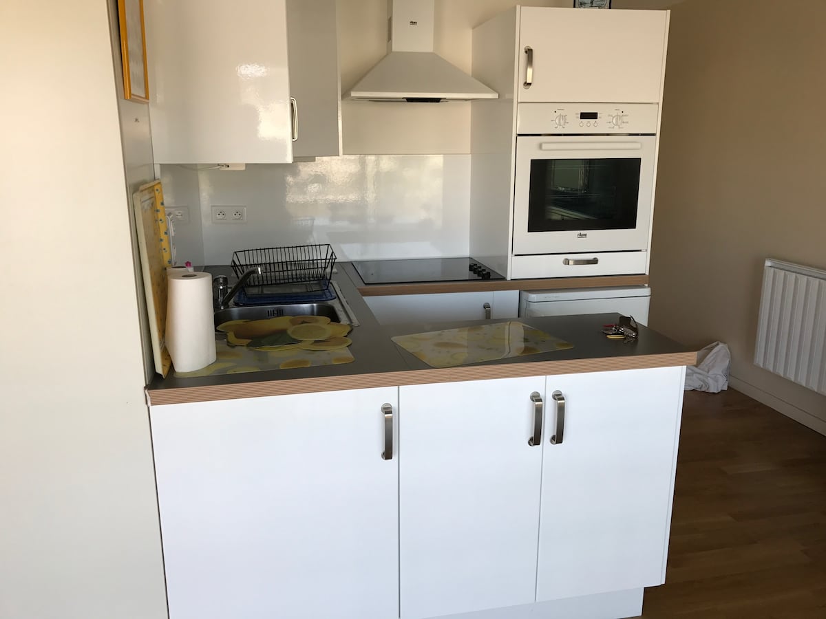 T2 omgjort til en stor studio (skillevegg revet). Fordelen er å ha 2 store vinduer med direkte utsikt over havnen i Pouliguen-la Baule. Ingen naboer rett overfor. Butikkene ligger innenfor en radius på 100 m (bakeri, slakter, marked, liten matbutikk). Strand 200 m. Parker bilen og gå eller sykle (2 sykler lånes ut) Privat parkeringsplass 300 m unna Svært komfortabel uttrekkbar seng (ekte seng, utmerket sengetøy)