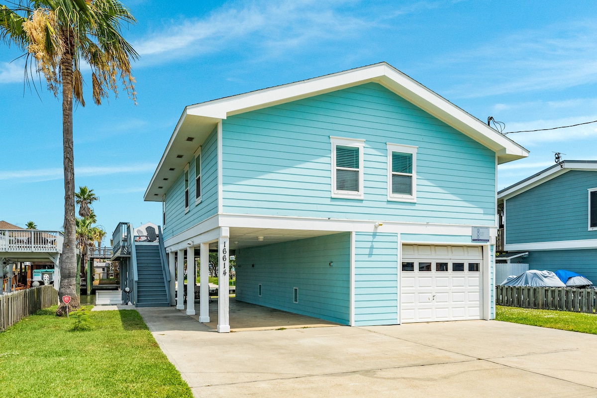Vår Kemah Bay Retreat ligger bare 2–3 minutters gange fra Kemah Boardwalk og Lighthouse District! Du er bare noen skritt unna familieunderholdning, butikker, restauranter og barer. Nyt utsikten og lyden av bukten fra båter og fugler som passerer forbi ved huset ved vannkanten. Kom deg ut på vannet med de medfølgende kajakkene og utforsk kysten. Fisk fra den private 216 fots bryggen vår. Det er en heis, elbil-lader, fotballbord, bordtennis, basketball, arkade, utendørs sjakk/dam og cornhole-spill.