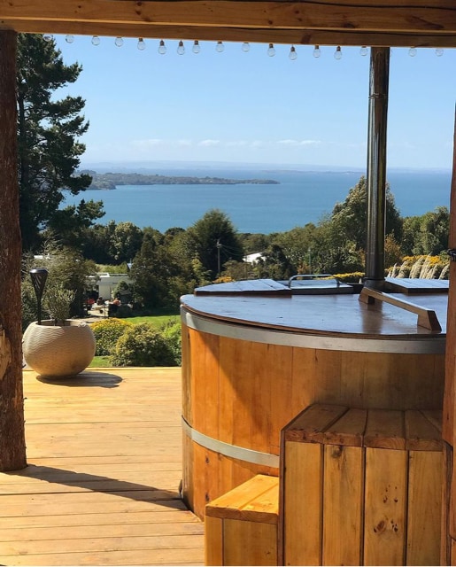 Tiny house med utsikt over havet og den opprinnelige skogen
