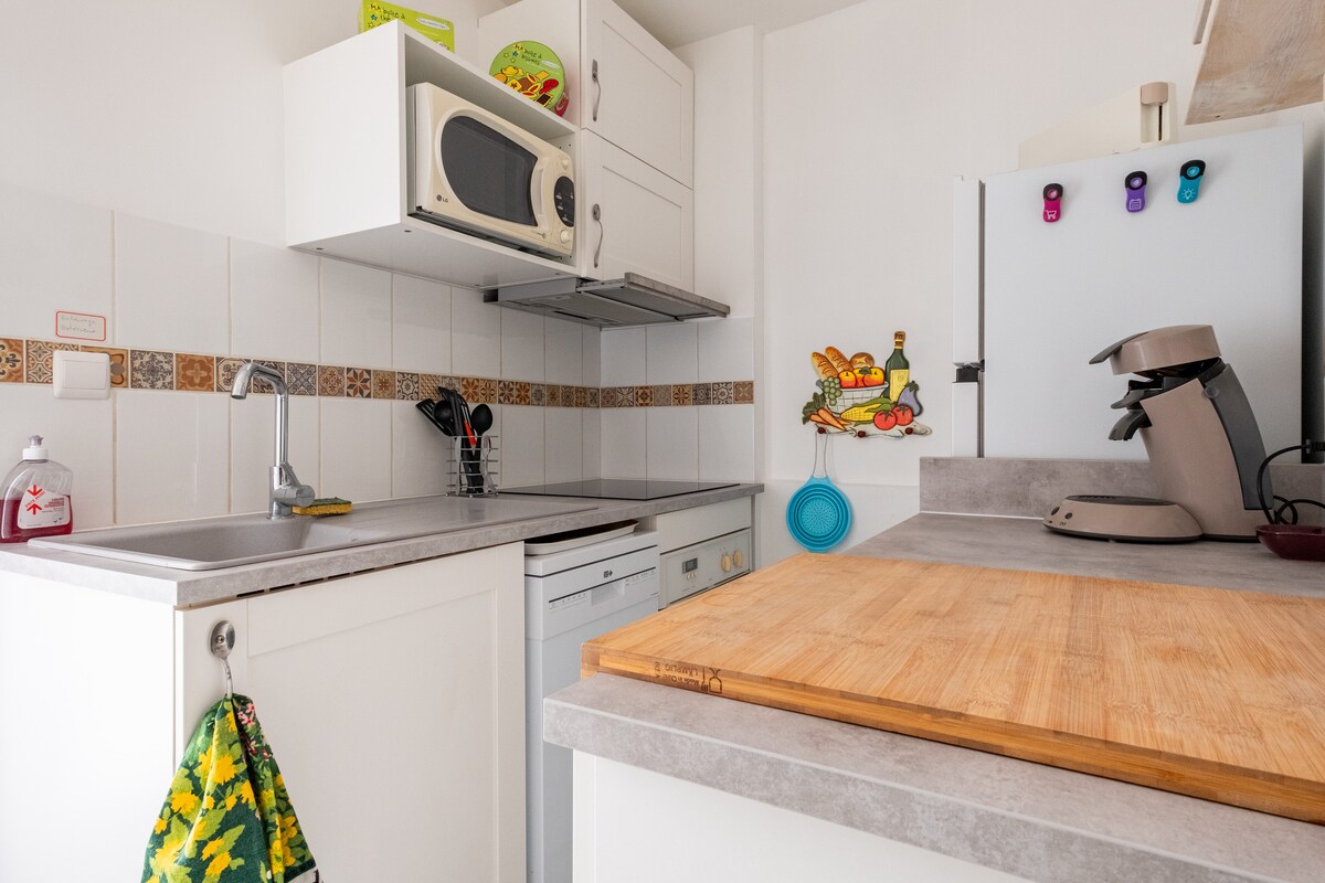 Sjarmerende studioleilighet med kjøkkenkrok og kjøkkenutstyr, med bad (badekar, dusj og toalett) som ligger i første etasje Uavhengig tilgang. Du kan slappe av i hagen . Det er skogkledd og planter for det meste oliventrær . Vi høster olivenene deres for å lage en deilig olje. Sikker parkering i oppkjørselen. Seng 160 + ekstra madrass på forespørsel. Oppbevaringsskap Håndklær og sengetøy er tilgjengelig. Brettspill.