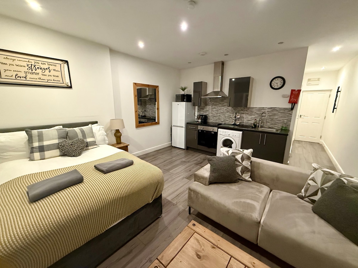 ❗❗❗MERK AT FESTER/SAMMENKOMSTER OG ARRANGEMENTER IKKE ER TILLATT PÅ DETTE AIRBNB-UTLEIESTEDET. ❗❗❗ Velkommen til den sjarmerende Airbnb-ferien vår i hjertet av Bradford. Denne moderne, renoverte leiligheten har komfortabelt plass til to gjester, noe som gjør den til et ideelt tilfluktssted for par som ønsker en romantisk ferie. Den åpne planløsningen skaper en varm og innbydende atmosfære, noe som sikrer et avslappende opphold. Viktige steder i nærheten: BRI Hospital Cartwright Hall Prisbelønte Lister Park. 5–7 minutter med bil fra sentrum.