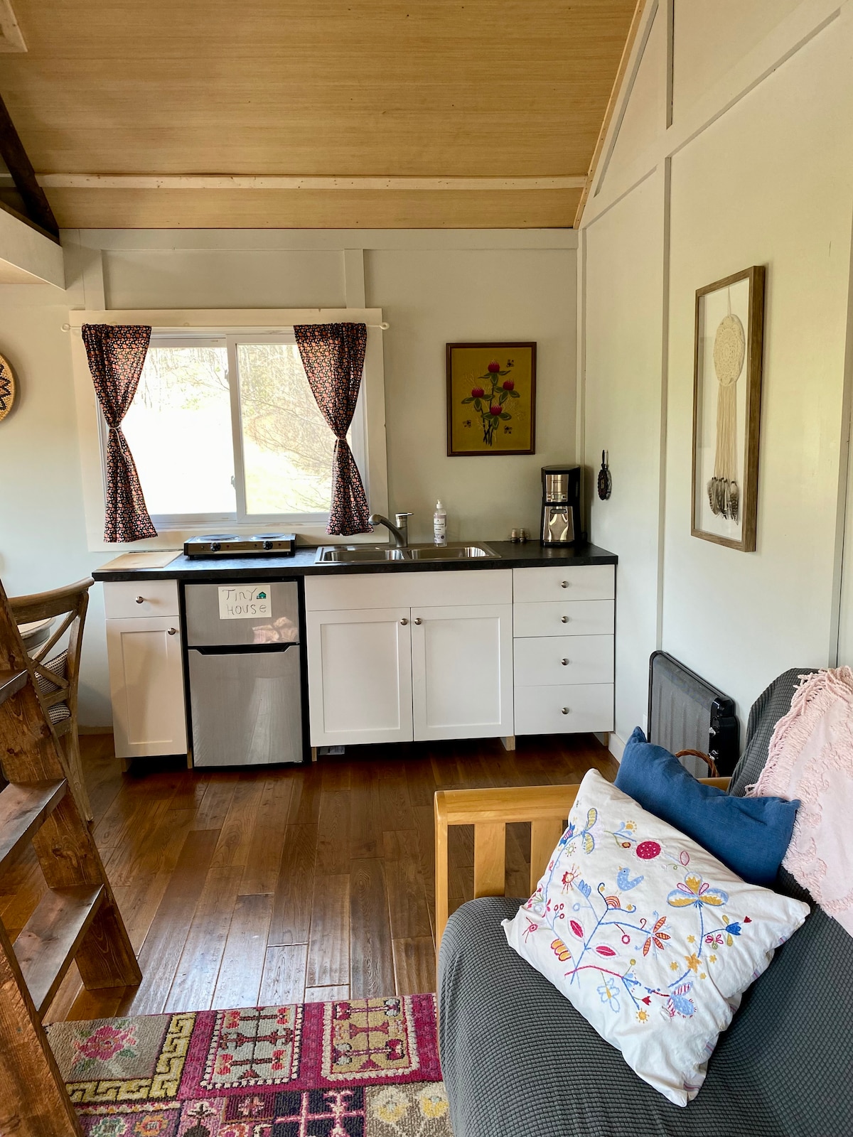 Nybygd minihus to miles sør for Northport. Plassert i skogen med utsikt over en dam og omgitt av en økologisk vingård/gård. Kort spasertur til økologisk vingård, fem minutters kjøretur til Northport, 15 minutter til Leland og 20 minutter til Sutton 's Bay. Mange vakre strender i nærheten! Fire sengeplasser totalt, to på en queen size-seng i loftsleilighet og to på en futon i første etasje. Det er innlagt vann inne, varmt og kaldt, men det er ikke toalett eller dusj inne. Utenfor er det et veldig rent, bærbart toalett og utendørs dusj.