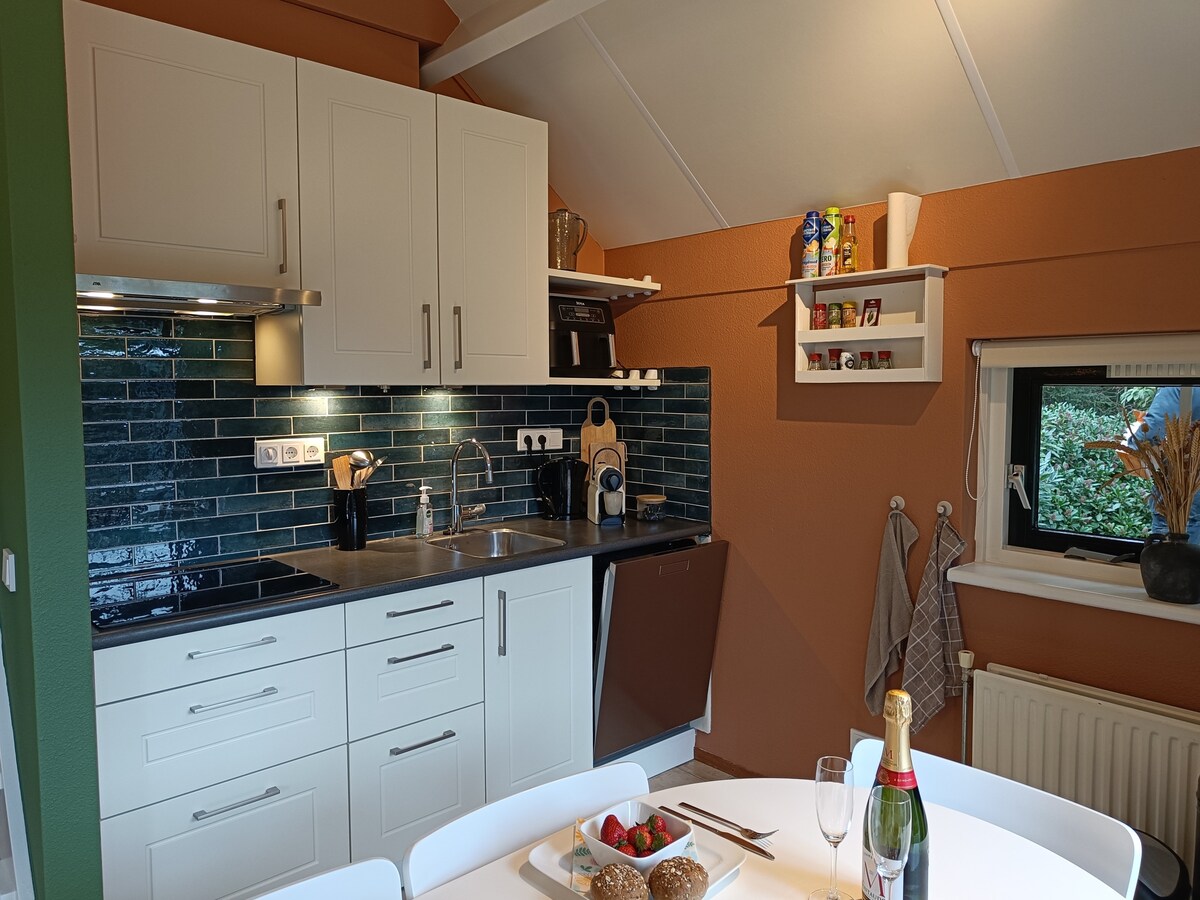 Denne frittstående hytta ligger skjult i en grønn hage i Amerongen. Det ideelle utgangspunktet for å utforske de vakre omgivelsene. Dype skoger, elvelandskap, historiske eiendommer og slott inviterer deg til å ta vakre gåturer og sykkelturer. I 2018 ble terrengsyklingsruten i Amerongen erklært som den vakreste i Nederland. Vi ønsker deg hjertelig velkommen til et fantastisk opphold.