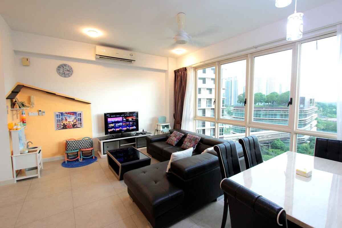 Velkommen til Alice & Papa hut, vi har en annen utleievert > 300 fornøyde gjester allerede. Leiligheten er 1 + 1, totalt 790 kvm, romslig og møblert med queensize-seng, en køyeseng og en enkeltseng. Tilgjengelige fasiliteter: vaskemaskin og tørketrommel, trådløst internett, mikrobølgeovn, TV, komfyr, toalettartikler, håndkle, varmeapparat. Stedet ligger tre minutters gange til Legoland og Medini kjøpesenter. Du kommer til å elske huset med 270° paranormal utsikt fra bassenget – hage – Legoland. Til slutt kan du ta direktebussen til Singapore, JPO, JB sentral rett overfor.