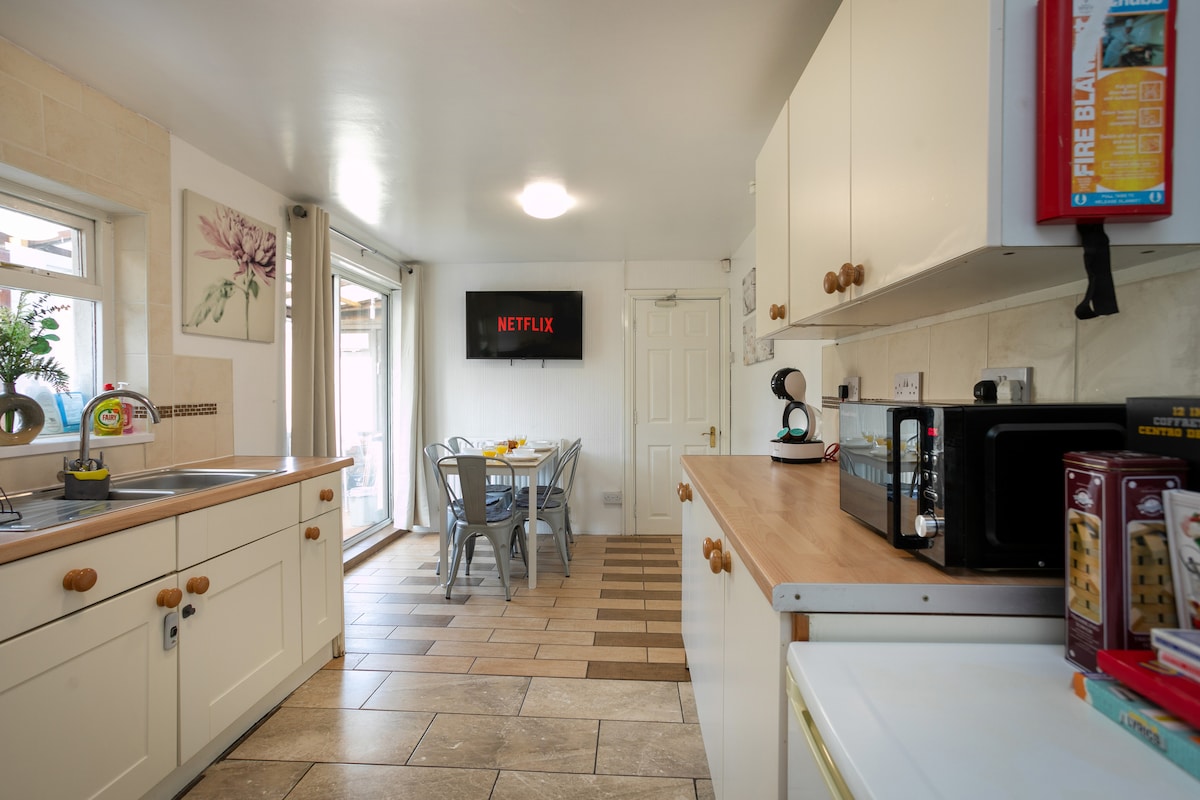 Welcome to our spacious 5‑bedroom property , perfect for contractors, families and larger groups. Unwind in the private hot tub, enjoy friendly competition on the PS4 or at the darts board, and make the most of the garden with outdoor dining space. Take advantage of FREE parking on a private driveway, plus extra street parking when needed. The home is ideally positioned near Burton train station and major airports, with quick access to the A38, A50 and M1. Peak District, Alton Towers or Museum.