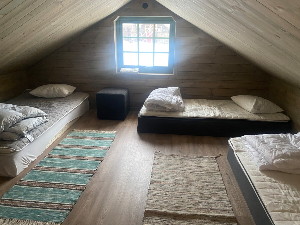 Velkommen til "The Sleeping Bear", et sjarmerende helt hjem for to personer i 1. etasje i et tradisjonelt hus i Håkafot, på den mytiske Vildmarksvägen. Bli forelsket i et unikt miljø omgitt av store skoger, glitrende innsjøer og i nærheten av den vakre Hallingsåfallet-fossen. Perfekt for elskere av fotturer, fiske, fotografering eller bare autentiske naturelskere.