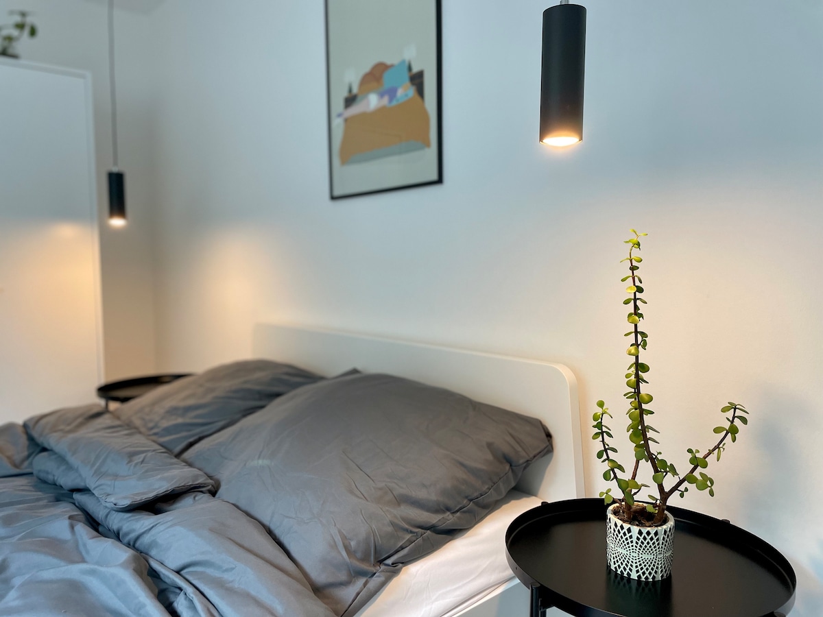 Lys ca 75 kvm stor loftsleilighet to separate soveområder med dobbeltseng 140/200 eller 180/200. Badet er utstyrt med badekar, separat dusj, veggmontert toalett, vask og LED-speil. Spisestuen er designet for fire personer og ligger rett ved siden av det åpne kjøkkenet med kjøleskap, mikrobølgeovn, oppvaskmaskin, keramisk kokeplate, ovn og kaffemaskin. På andre nivå finnes treningsapparater, arbeidsplass og dobbeltseng med TV.