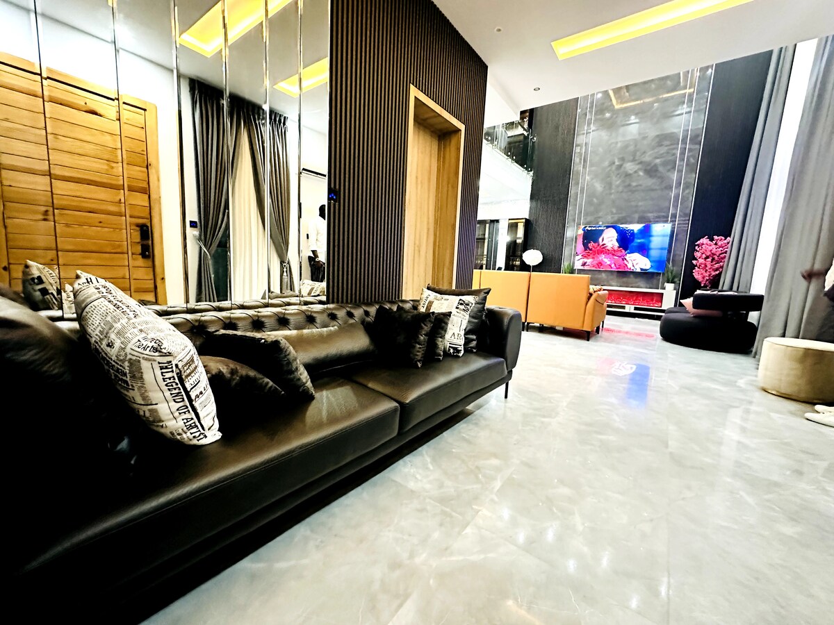 Denne nydelige dupleksen med fire soverom har en moderne blanding av fargerike møbler. Lys, romslig stue. Fullt utstyrt kjøkken og spiseområde. Romslige soverom og bad med dusj ligger i hjertet av Lekki fase 1 med et utrolig utvalg av restauranter, nær Palms kjøpesenter, Nike Art Gallery, Oniru privat strand.