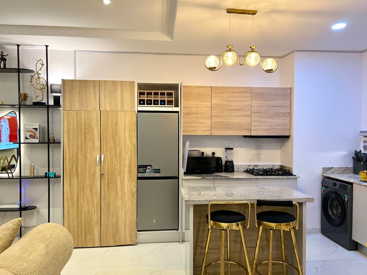 Velkommen til den moderne, koselige ettromsleiligheten vår «CAPRI». «CAPRI» ligger i hjertet av Lekki Phase 1, rett ved Admiralty Way. Med moderne design og en koselig atmosfære er dette stedet perfekt for dem som ønsker komfort og stil. Nyt en åpen planløsning fylt med naturlig lys, et fullt utstyrt kjøkken og et stilig oppholdsrom som inviterer til avslapning. CAPRI ligger praktisk til i nærheten av trendy kaféer, butikker og det pulserende nattelivet i Lekki fase 1, og er det ideelle urbane tilfluktsstedet.