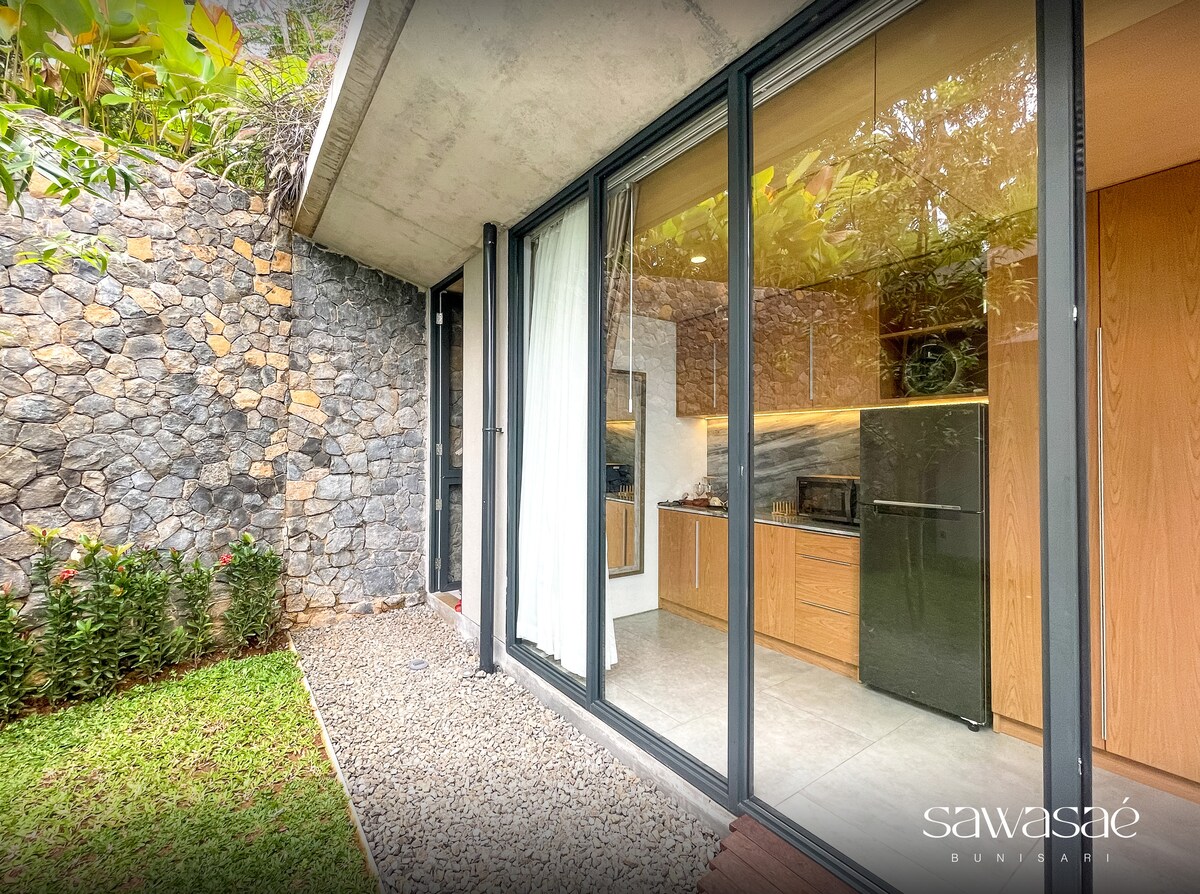 Oppkalt etter Sundanese, en kombinasjon av ordene «Imah» (hjem) og «SAE» (god). Komfortabelt hus i Japandi-stil med tre soverom, seks sengplasser. Enkel design med et naturlig preg skaper en rolig og varm atmosfære.