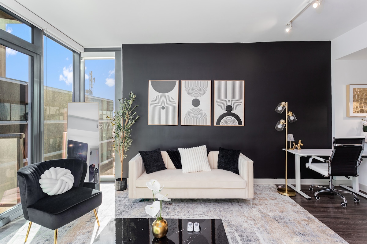 🌟 FREE Parking 🌟 Welcome to our stylish, secured high-rise unit, perfectly located in the heart of the city just steps from downtown attractions and top fine dining spots * Modern, elegant space * Rooftop gym & pool access * Self check-in (key pickup 6 mins away) * Additional Vehicle parking available for $15 * Professionally cleaned with Enviro-Master’s non-toxic, virus-eliminating spray *Safe & Secure Book your stay with style, high-rise, comfort and convenience in mind!
