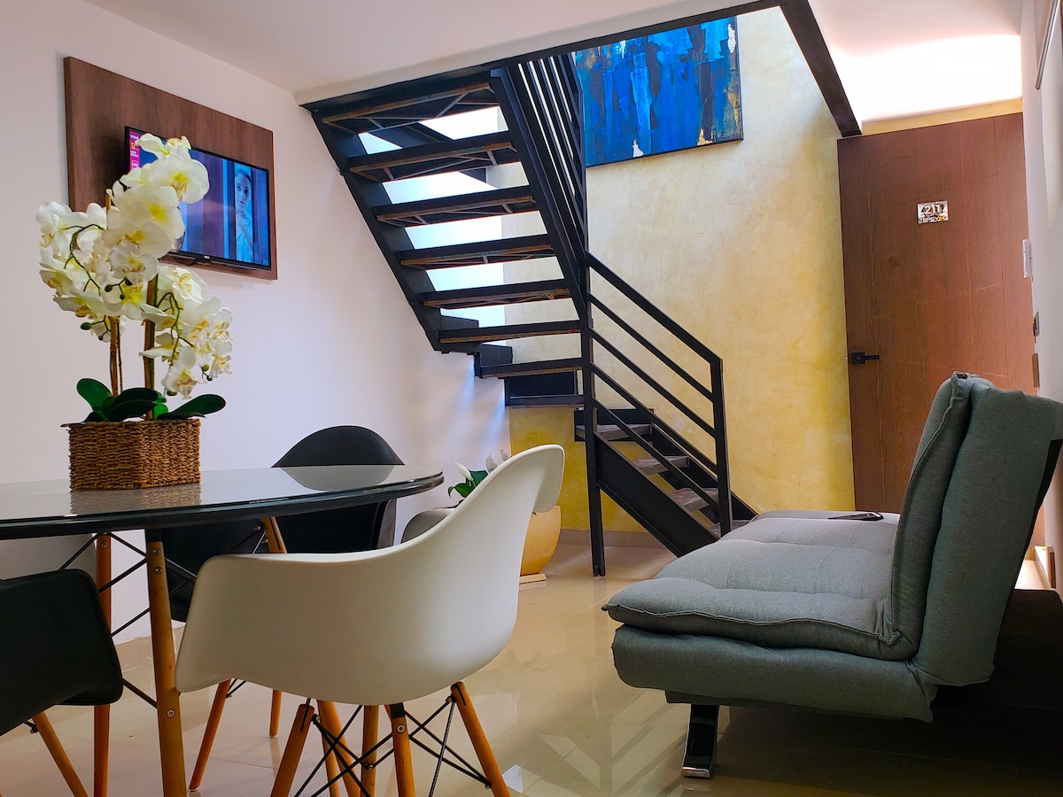 ★ 18 m² miniloft med terrasse. ★ Kompakt mesaninsoverom, for å slappe av eller hvile bare mens du sitter eller ligger ned ★ Vaskemaskin/tørketrommel med vaskemiddel og basisartikler ★ Dobbeltseng og blendingsgardiner ★ Fullt utstyrt kjøkken. ★ Parkering er tilgjengelig foran eiendommen. ★ Sikkert område med kontrollert tilgang ★ Trådløst nettverk, smart-TV og Netflix ✔ 5 min fra Regional & General Hospital ✔ 15 minutter fra Altacia, Outlets & Autodrome ✔ 20 minutter fra Puerto Interior & PILBA ♡ Legg det til i favorittene dine og bestill nå!