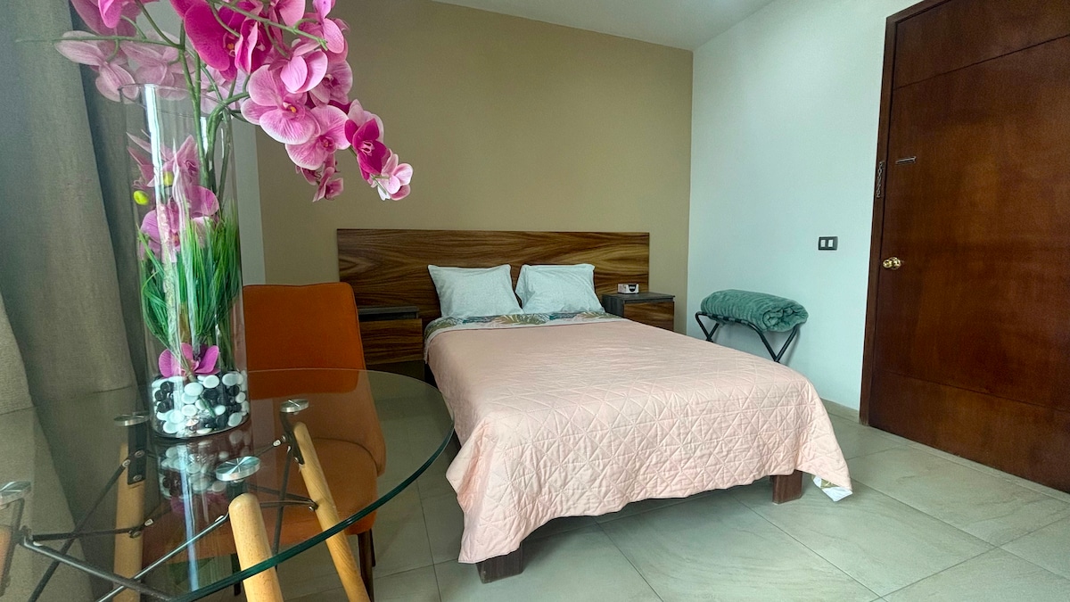 Velkommen til den vakre «Executive 3»-suiten i Casa Blanca. Nyt et komfortabelt og privat opphold i den vakre suiten vår med eget bad, skrivebord og TV. Tilgangen er enkel og sikker med en kode, og du kan komme fra kl. 15.00. Det delte huset tilbyr kjøkken, spisestue, vaskerom, røykeplass, arbeidsområder og raskt trådløst nettverk. Den ligger i El Dorado-området, med parker, kontrollert tilgang og sikkerhet døgnet rundt, er det ideelt for din trygghet. Utmerket verdi for pengene!