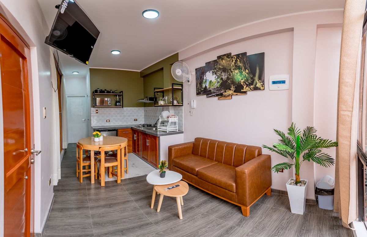 AC + kjøkken + varmtvann + Netflix + Vaskemaskin (og mer!) Familien og vennene dine vil være i nærheten av alt i denne romslige, sentralt beliggende overnattingen i Tingo María. Du kan spasere til hovedtorget, markedet, turistbyråer, transport med mye mer! I tillegg er overnattingen bare to kvartaler fra Puente Corpac, den viktigste tilgangen til turistattraksjoner som fosser, rekreasjonsområder, grotter osv. Det viktigste er at du liker oppholdet ditt!