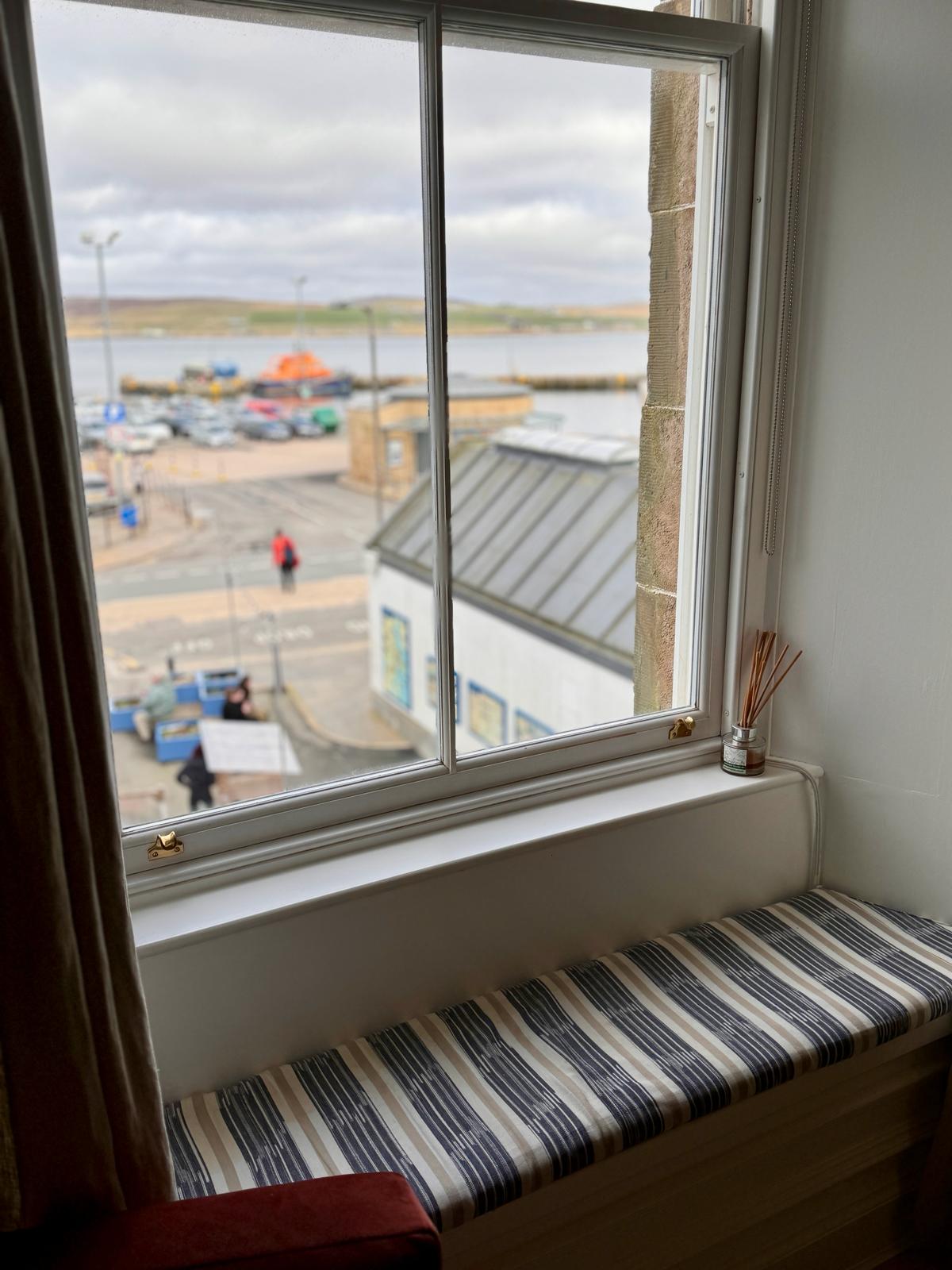 Enjoy a stylish experience at this centrally-located apartment. Overlooking the Victoria Pier in Lerwick with a view out over the island of Bressay, enjoy the sunrise from the south facing panoramic bay window. Located just a stone throw away from Commercial Street and on the doorstep of the historic Fort Charlotte, you couldn’t be in a more convenient location. With a bath to soak in and a king size bed to relax in after exploring beautiful Shetland, your base will elevate your stay.