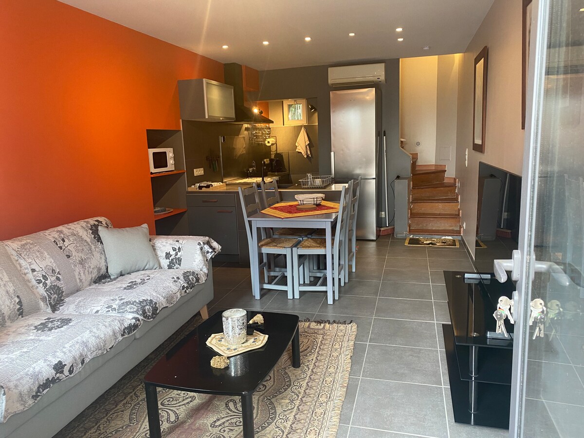 Nyt et elegant og sentralt oppholdssted. Dupleks-hytte i hjertet av landsbyen, i en sjarmerende, elegant og grønn gate. Stue, spisestue og kjøkken i 1. etasje med et første uavhengig soverom i duplex: seng på 160 cm mulig 2x80, dusj, garderobe og separat toalett. I 2. etasje, master bedroom med eget bad, liten vaskerom og, toppen av kransekaken, en flott terrasse med panoramautsikt over landsbyens hustak og kirken.