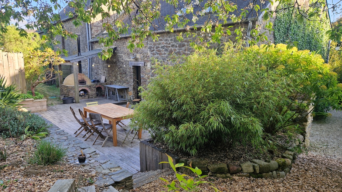 Sjarmerende hytte, 4-stjerners vurdering, totalrenovert av oss selv, som ligger på en stor, dekorativ tomt, delt med blomstergården vår. Hytta vår er ideell for et avslappende familieopphold, eller for å oppdage middelalderlandsbyer med bretonsk historie og kultur, og kan også tilby deg grønne ferier eller ferier ved sjøen. Som oftest bor vi her for å hjelpe eller spørre deg hvis du trenger det.