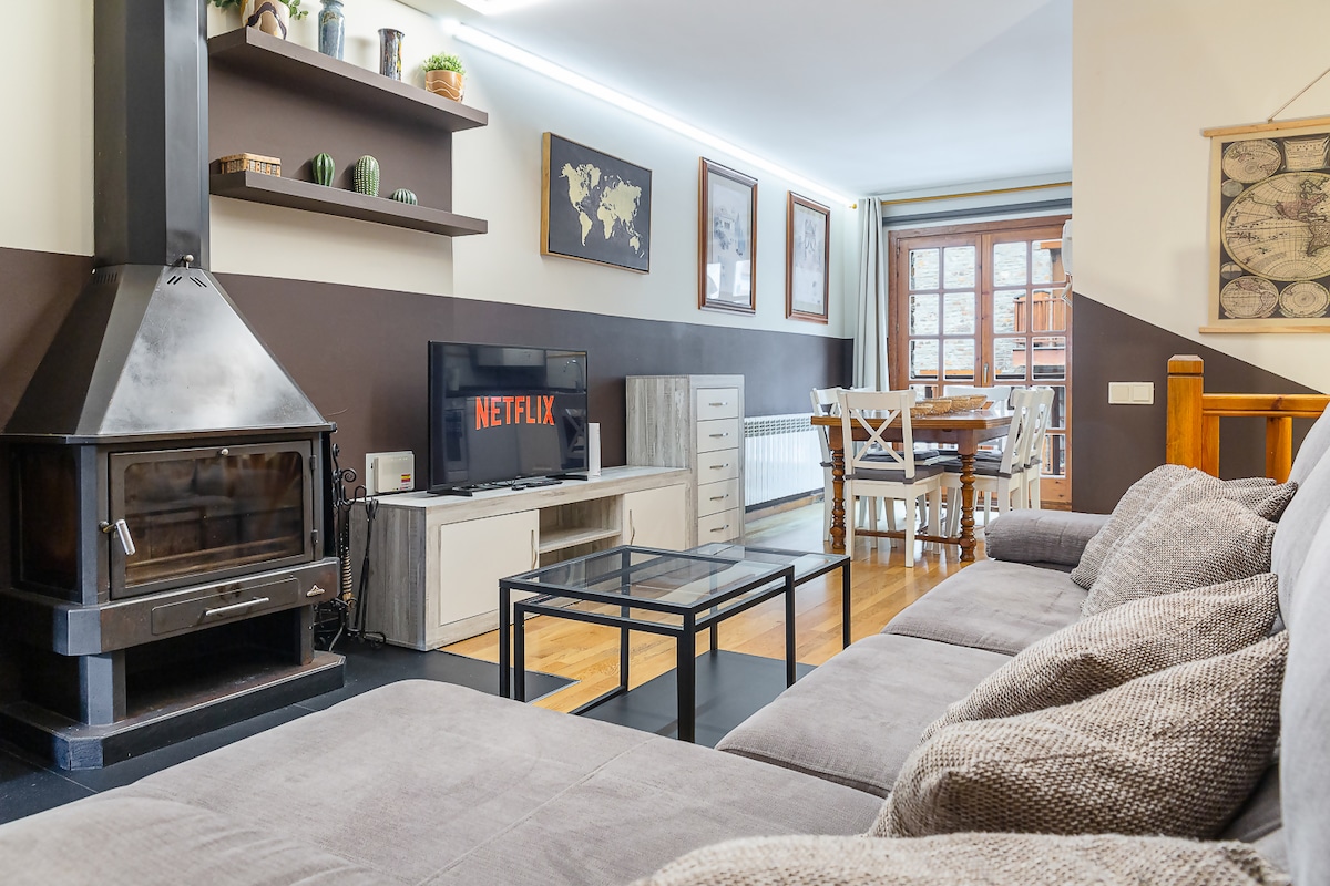 Denne unike boligen har sin egen personlighet. Leilighet for 6 personer. Med terrasse. Plassert ved foten av Sky-løypa. Med gratis privat parkering. Den har alt du trenger for et komfortabelt og hjemmekoselig opphold. Den har tre soverom. Ett av dem er utstyrt for fjernarbeid. Kjøkken, bad, stue og terrasse i hovedrommet. 60-tommers TV, med forskjellige underholdningsplattformer. Du vil føle deg som om du er i en hytte omgitt av natur og snø.