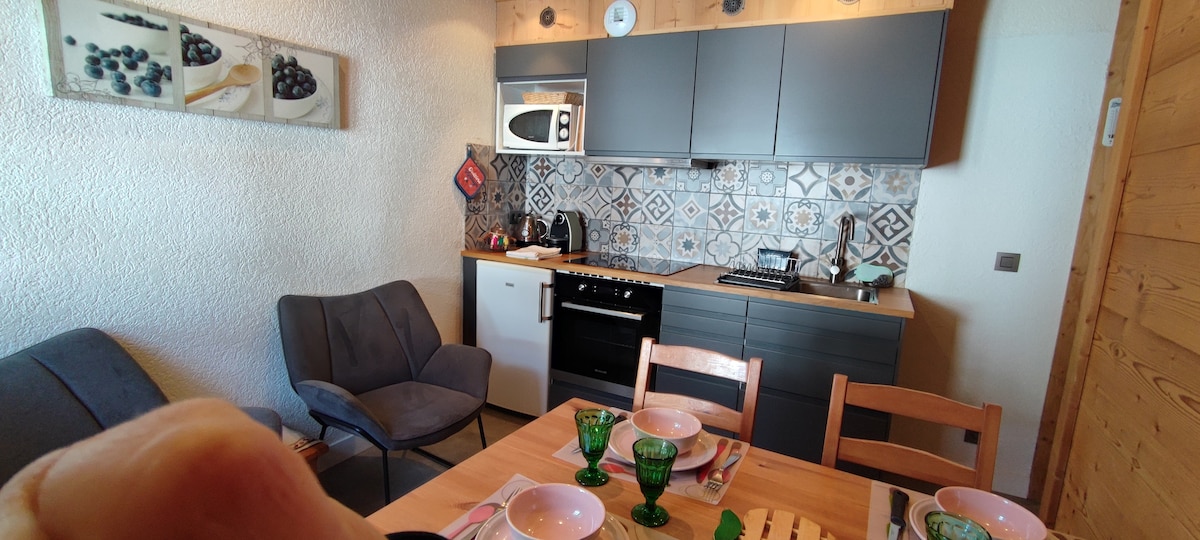 La bilen stå på parkeringsplassen og nyt feriestedet til fots! Beliggende ved siden av et offentlig SPA, Carrefour Montagne, skibakkene 100 m unna. Dette 30 kvm rede, stille, vendt sørover, har en inngang/skiskap, et lite soverom med en 140 x 190 cm seng, nattbord, garderobe, et kjøkken med oppvaskmaskin, vaskemaskin, kombi-ovn-mikrobølgeovn, Nespresso-maskin, en stue med sofa, trådløst nettverk, en smart-TV med Netflix og Orange, en balkong i sørvest, redde senger.