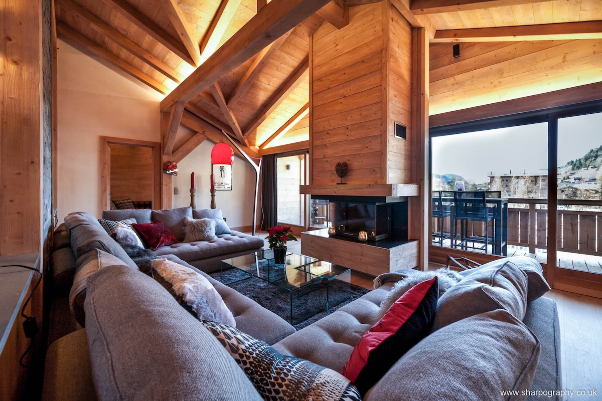 Penthouse er en fantastisk, moderne eiendom som kan sove 12. Den ligger på to nivåer, og tilbyr spektakulær utsikt og enkel tilgang til feriestedet Les Gets.\n\nLeiligheten ligger i hjertet av det som skjer. Nærmeste heis ligger bare noen meter unna, og du kan gå til alle Les Gets fantastiske butikker og restauranter. Etter å ha gått på ski kan du gå tilbake, skifte og være tilbake i baren før après har begynt. Det ligger rett utenfor døren og venter på deg, mindre enn 90 minutter fra Genève.