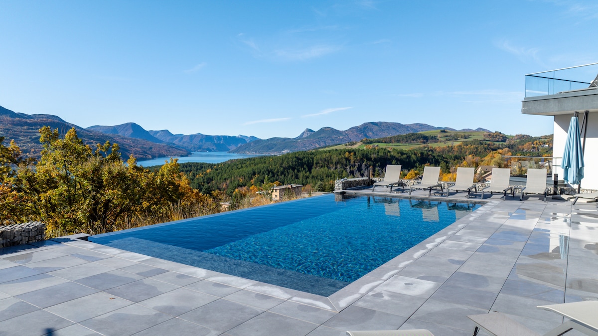 Ny, med utsikt over innsjøen, XXL terrasse og moderne komfort