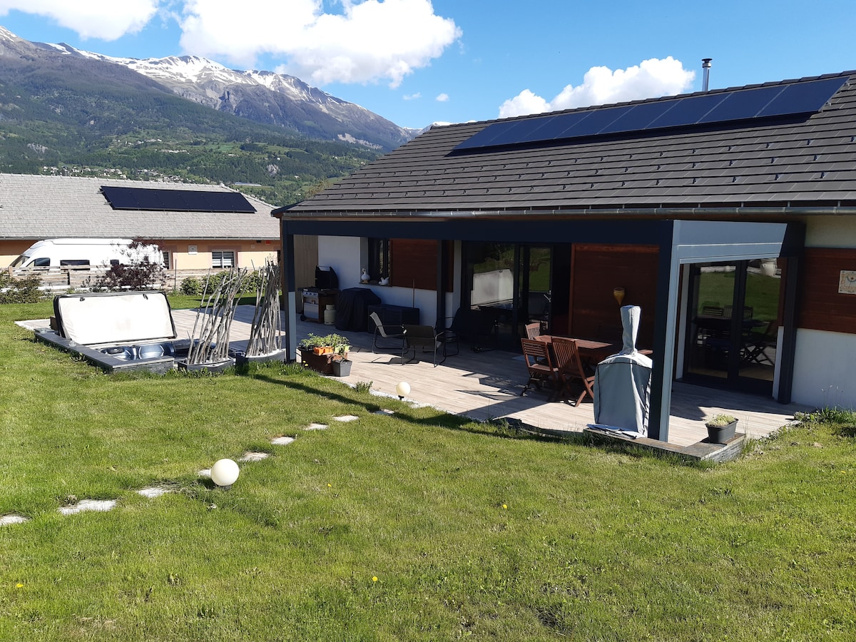 Hytta vår ligger i en rolig privat hage. Fra terrassen på 30 m2 kan du nyte panoramautsikt. Gratis parkering. Vi har lagt særlig vekt på utstyr og innredning for en koselig atmosfære. 5 minutter å gå fra sentrum av Guillestre finner du: alle butikker, kino, restauranter, supermarked. Ved portene til Queyras, Vars, Risoul, og Embrunais vil den geografiske beliggenheten gi deg tilgang til en ubegrenset lekeplass både sommer og vinter.
