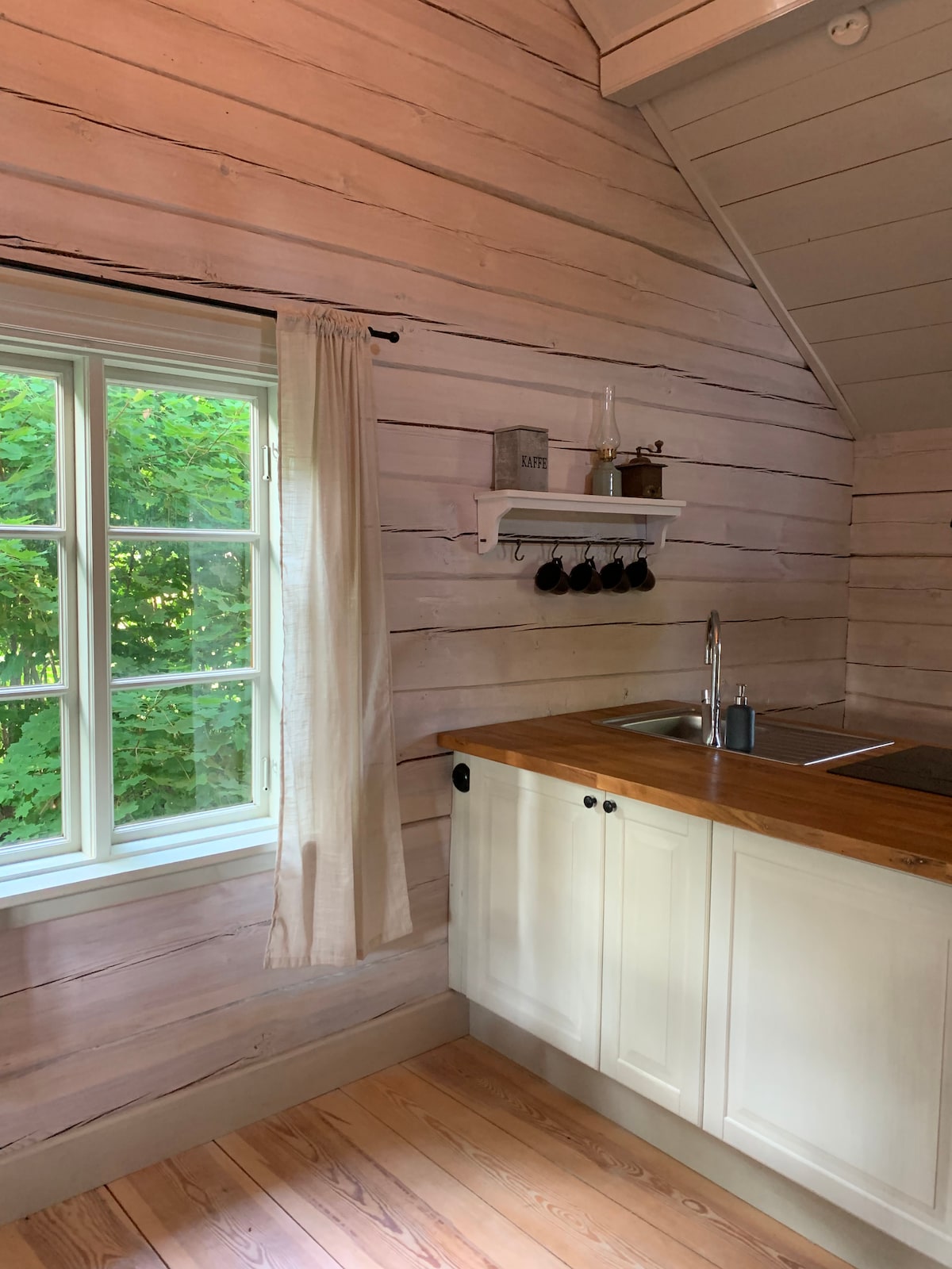 Sjöstugan – vår perle rett ved sjøen! Eget hus med sovehems, kjøkken, et vakkert stort rom med peis og utsikt over innsjøen. Vedfyrt badstue med bading i innsjøen rett ved siden av. Boblebad på bryggen – alltid varmt. Badebrygge 5 meter utenfor døren. Tilgang til båt. Hvis du vil kjøpe fiskekort, kontakt verten. Ved til peis og badstue er inkludert. Gården er inngjerdet helt ned til sjøen, og vår beagelhund Vide er ofte løs ute. Han er snill. Sengetøy, håndklær og rengjøring er inkludert.