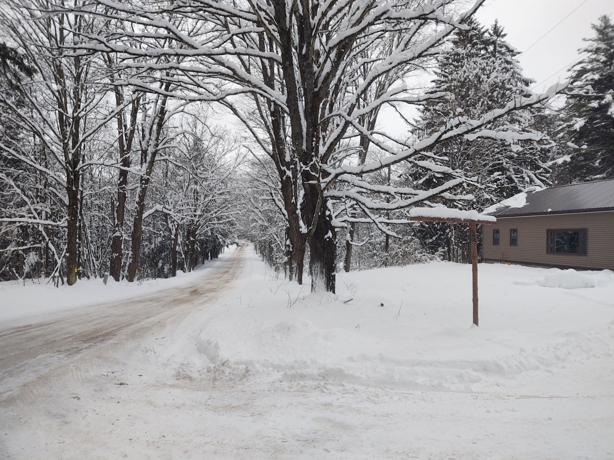Denne vakre åpne planløsningen er sentrert rundt propanpeisen. Kom og sitt på verandaen og hør kalkunene skvalpe. Den tre hektar store tomten ligger på snøscooter- og ATV-stiene i Lewis County. Nyt å gå til sentrumstorget Brantingham og spise middag eller ta en drink. Denne innstillingen er ideell for en ferie. Turstier, golfbane og sykling. Old Forge ligger mindre enn én time unna. Kom og bo hos oss, du vil ikke angre!