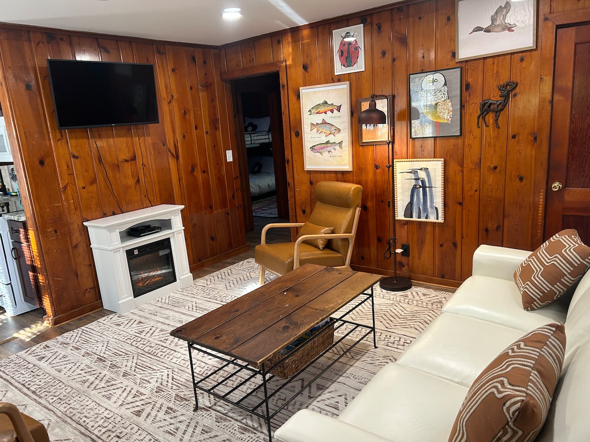 Du bor ikke på bestemors hytte her! Vår ryddige og velholdte hytte er full av oppdateringer og plass til hele familien, venner og kjæledyr. To private soverom og plass til å pakke inn barna på loftet. Vi er bare en kort spasertur unna én av åtte private innsjøer du gjerne kan bruke! Uteområdet vårt er perfekt innredet for ferie og har et HELT NYTT BOBLEBAD! Nyt kaffen din på terrassen foran, grill på terrassen bak og sitt rundt bålet etter mørkets frembrudd i den inngjerdede hagen.