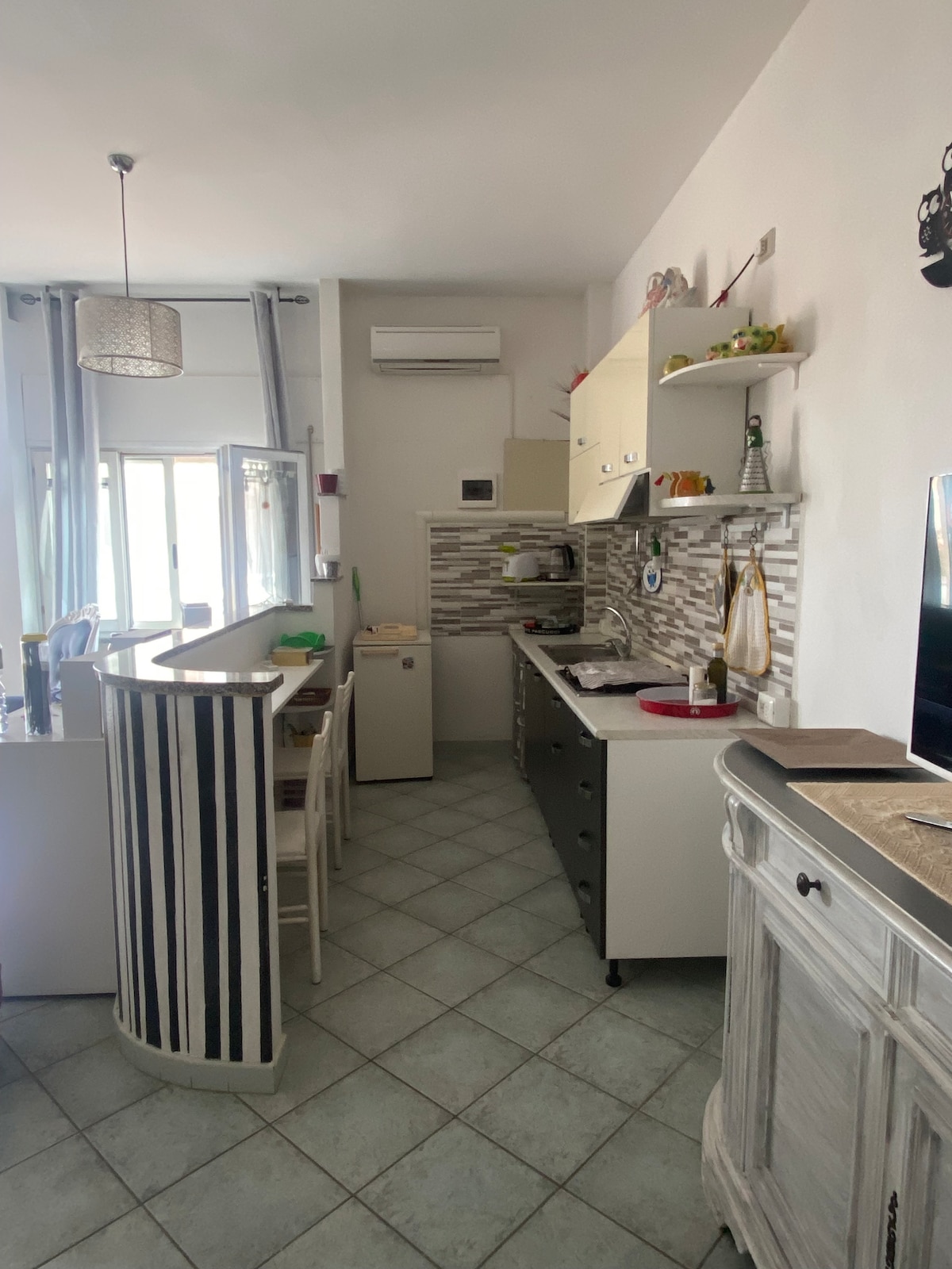 Herlig leilighet Du kan gå til sjøen til fots. Panoramautsikt, klimaanlegg, nær strendene. frisk og godt ventilert hus bestående av 2 soverom, ett dobbeltrom og ett dobbeltrom med 2 senger, et arbeidsområde, bad med vindu, kjøkken, stue, utgang til en balkong. Alle rommene har balkonger med panoramautsikt. Gratis parkering utenfor huset. I nærheten finner du supermarked, delikatessebutikk, pizzeria, apotek, bar, frukt og grønnsaker.