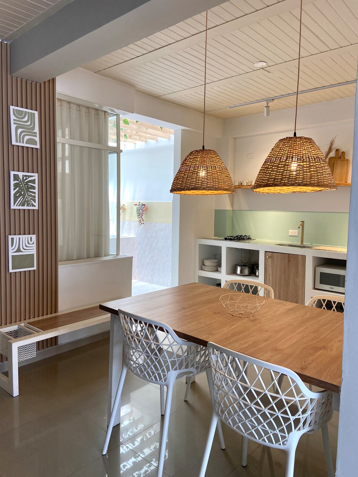 Hjem i første etasje, boho chic og bohemsk stil, romslig og elegant for fem personer som ligger i det sentrale området av Libano, to kvartaler fra hovedparken, på riksveien Cambao Manizales. Den har 2 soverom, en dobbeltseng og 3 enkeltsenger, pluss bad med varm dusj. Bordet med fire seter fungerer for fjernarbeid. Kjøkkenet er utstyrt med mikrobølgeovn, kjøleskap, blender, sandwichmaskin. I huset er det parkering tilgjengelig for små biler, motorsykler og sykler.