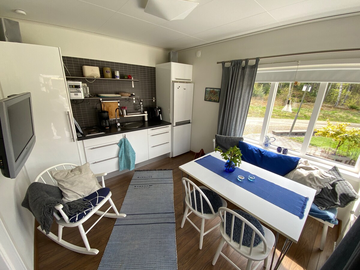 Hytta ligger i et rolig og naturskjønt område 1 mil fra vakre Lidköping. Nede ved stranden, 150 meter fra hytta, er det en offentlig brygge hvor du kan sole deg og bade fra. Rett ved siden av hytta er det en skog med fine turstier, som du kan plukke bær og sopp i når sesongen er over. Utemøbler og grill er tilgjengelig fra der du kan spise med utsikt over innsjøen.