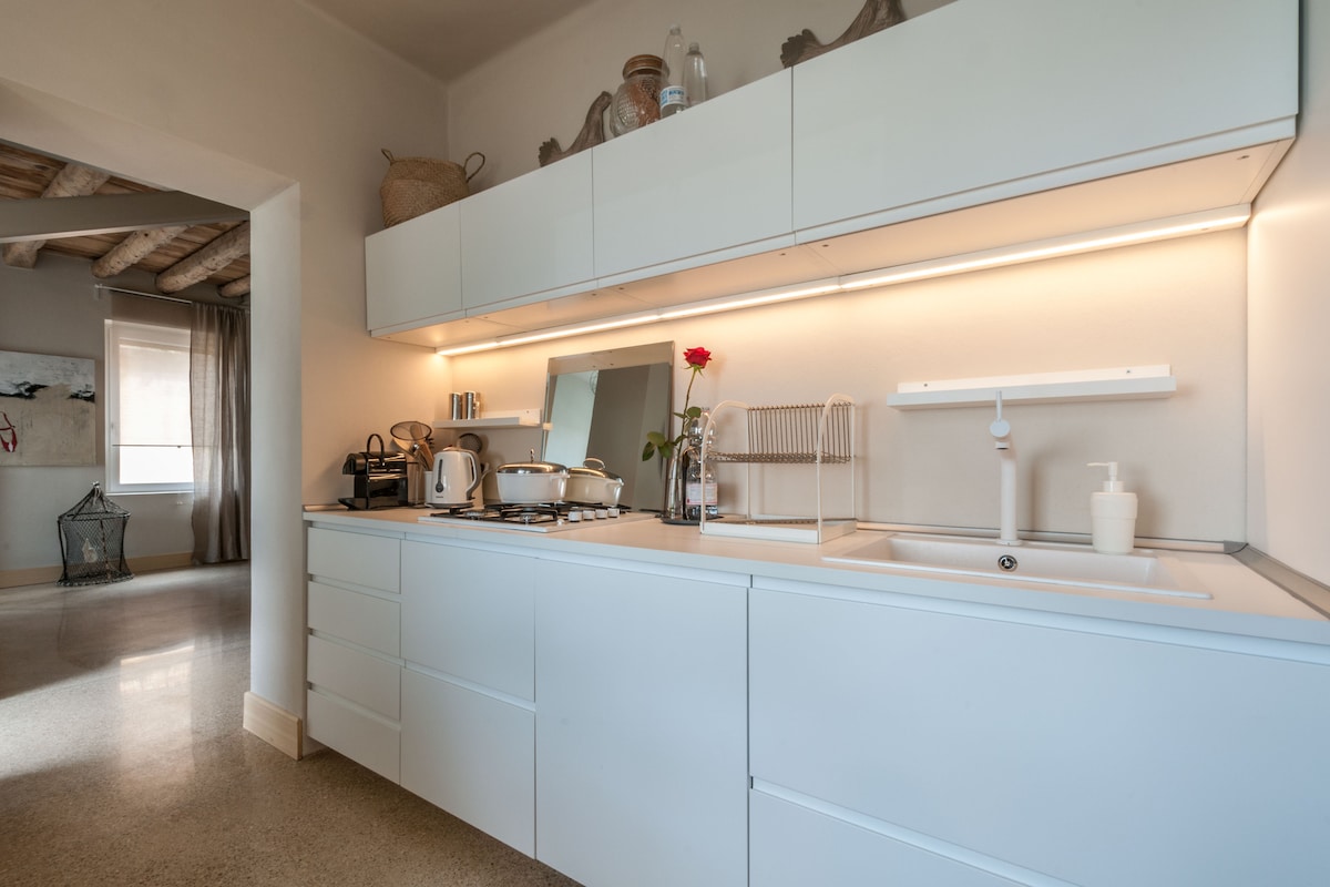 «Il ramo di kaki» er en svært komfortabel leilighet på 120 kvadratmeter. Det var mine besteforeldres sommerbolig på 50-tallet. Leiligheten ble totalrenovert i 2018. Den ligger i andre etasje i det historiske huset i hovedgaten i Lido, Gran Viale. Huset har beholdt de originale og vakre venetianske terrazzogulvene, men har likevel alle moderne bekvemmeligheter. «Uansett hvor du drar, blir det en del av deg på en eller annen måte» – Anita Desai