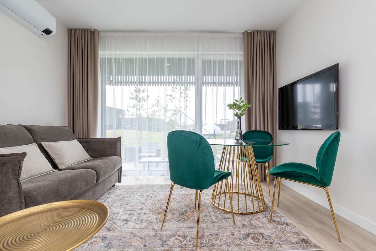 Leiligheter to minutter fra sjøen for familieliv, vakre rolige steder, ville strender, hvor hovedattraksjonen og verdien er naturen i seg selv, havet og den uforlignelige duften av skogen. Vi tilbyr en rolig ferie i leiligheter med terrasse, utgang til en lukket, isolert, utstyrt for avslapning, hage! Det blir fint å sitte på den romslige terrassen med en kopp kaffe om morgenen eller kvelden!