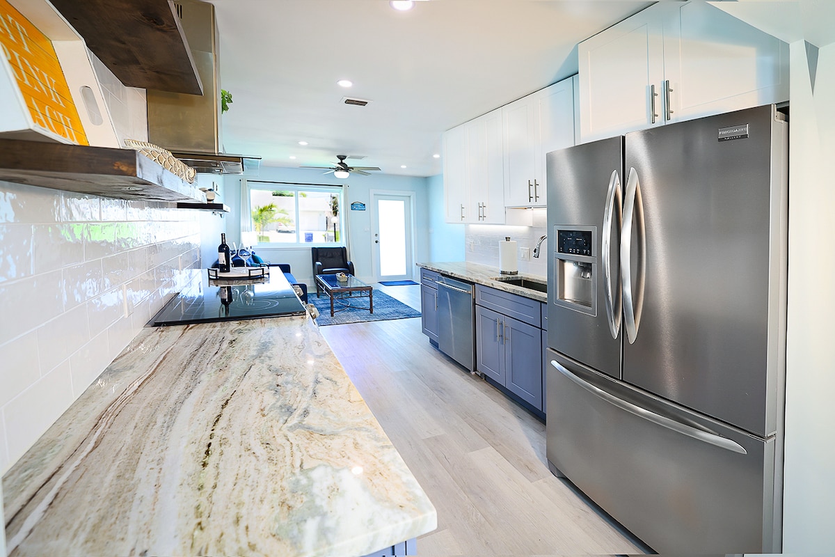 Dette fullt oppussede private hjemmet med tre soverom og to bad har alle fasiliteter og spesielle tilleggsutstyr som gjør oppholdet ditt veldig komfortabelt. Det har ikke basseng, men ligger i det ettertraktede nabolaget «The Cove» (øst for US1) og bare 1,4 miles fra Deerfield-stranden, vurdert som en av landets reneste og mest miljøvennlige strender. Cove Plaza ligger i nærheten med mange bekvemmeligheter, inkludert en gourmetdagligvarebutikk, et bredt spekter av spisesteder, butikker, salonger med mer.