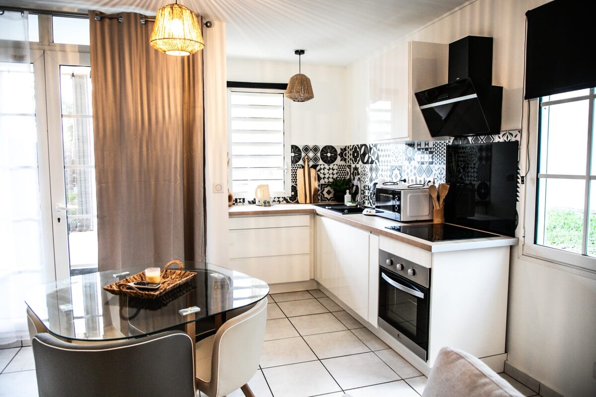 Vi ønsker dere velkommen til vår totalrenoverte leilighet med hage og skjermet terrasse hvor dere kan nyte alle bekvemmeligheter og et lite hjørne av naturen for å slappe av. Takket være sin ideelle beliggenhet, ti minutter fra det livlige sentrum av Saint-Pierre, strendene og restaurantene, 30 minutter fra Bourg Murat, sin grønne natur og Cité du Volcan, kan du enkelt utforske rikdommene i denne storslåtte regionen sør for Réunion.