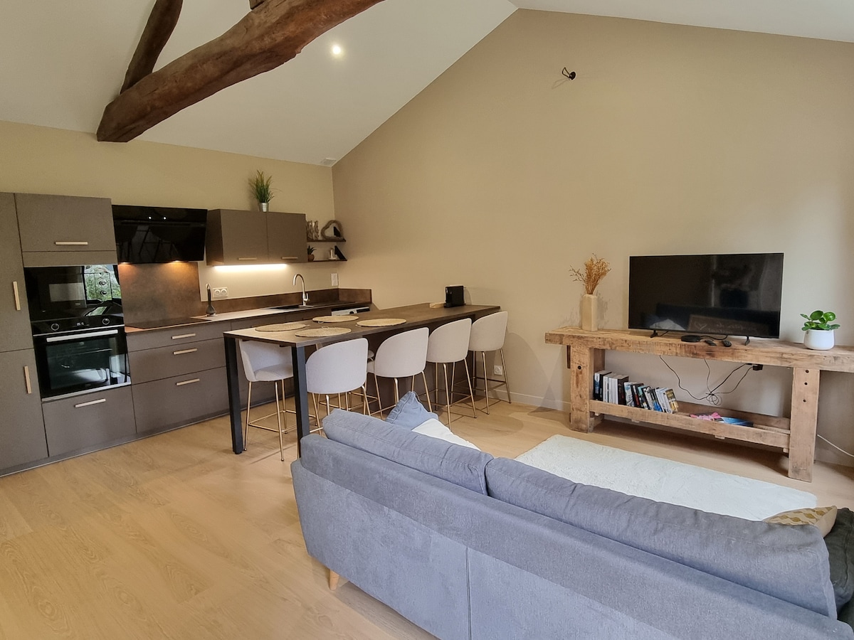 Ved portene til Poitiers, hus som tilbyr sjarmen av det gamle med alle moderne bekvemmeligheter. Hus i en gammel gård, tilstøtende eiernes bolig. Egen inngang, terrasse og hage. I første etasje finner du en stue som åpner seg mot et fullt utstyrt kjøkken (ovn, mikrobølgeovn, oppvaskmaskin, kjøleskap, induksjon ...). I andre etasje kommer du til en avsats med kontorhjørne som betjener et stort soverom med komfortabel seng på 160 cm, samt et bad.