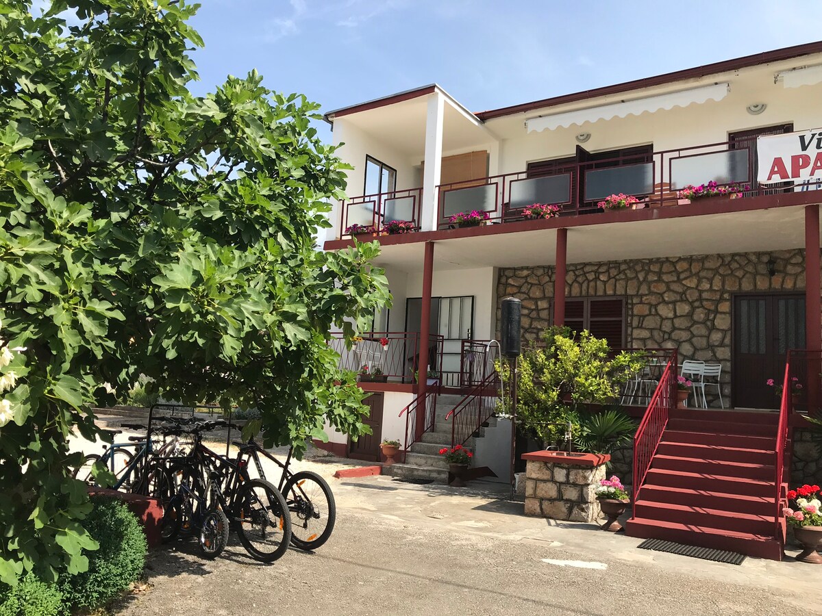 Toš ap ligger i midten av første etasje i et renovert tradisjonelt hus, i hjertet av en kystlandsby, innredet i hånden med tradisjon. Det er ikke det lyseste, men det tilbyr komfort i sommervarmen. Ap. består av stue med kjøkken, soverom og bad, og egner seg for familier. Gjester har tilgang til en fantastisk privat hage, som ligger bare 40 meter fra huset (tilgang via trapper). Den lokale stranden ligger bare noen få skritt fra hagen. Parkering, garantert, E-lader
