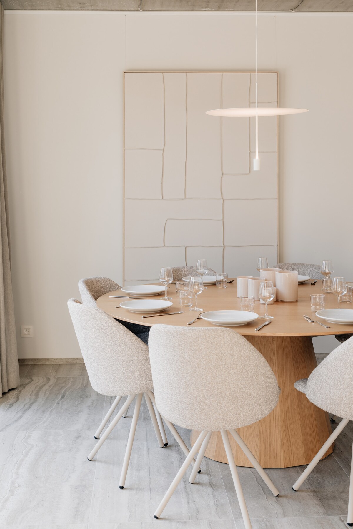 Dette huset i Oupeye tilbyr lyse omgivelser, åpent mot Meuse, hvor hver detalj inviterer deg til å puste. I en nøktern og monokrom palett tegner unike teksturer og gjenstander en diskret eleganse. Uten invasiv teknologi er stedet avhengig av stillhetens komfort. Nær forretningssenteret Bord de Meuse og RAVeL, er dette stedet ideelt for å jobbe i fred og slappe av ved vannet.